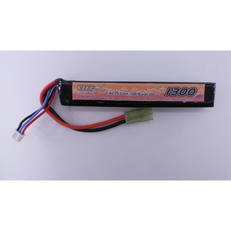 Votre magasin DR6 vous propose, dans sa gamme airsoft, cette batterie 1 stick Li-Po 7,4 V - 1300 mAh de la marque VB.