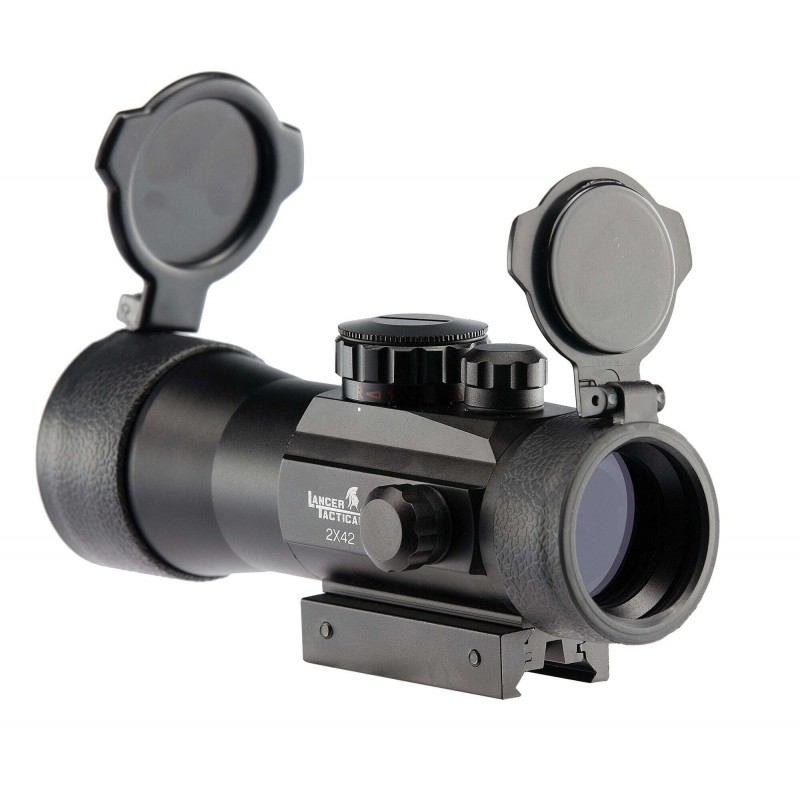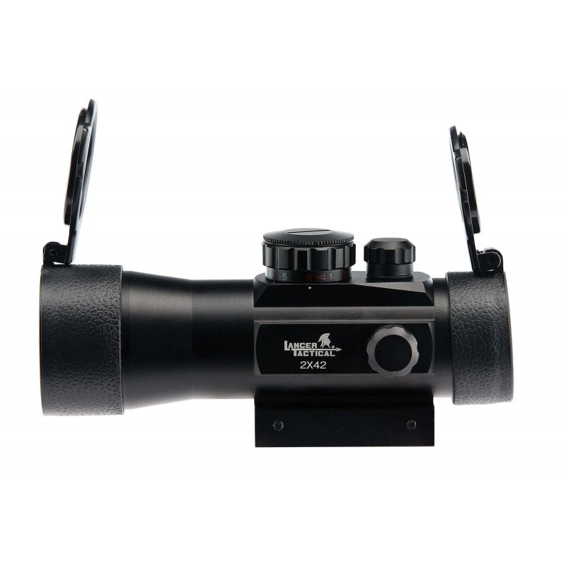 Votre magasin DR6 vous propose, dans sa gamme airsoft, ce viseur avec grossissement x2 (point rouge ou vert | se monte sur rail 21 mm Picatinny) de la marque Lancer tactical.