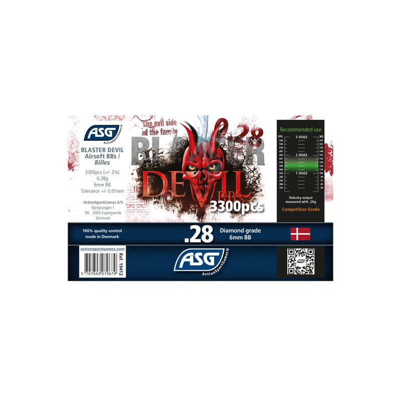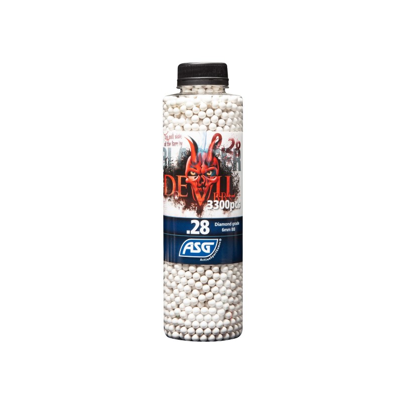 Votre magasin DR6 vous propose, dans sa gamme airsoft, ces billes airsoft Devil 0.28 gramme en pot de 3300 billes de la marque ASG.