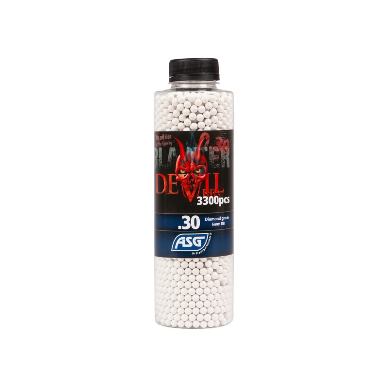 Ne laissez aucunes chances à vos adversaires avec ces billes airsoft Devil 0.30 gramme en pot de 3300 billes de la marque ASG.