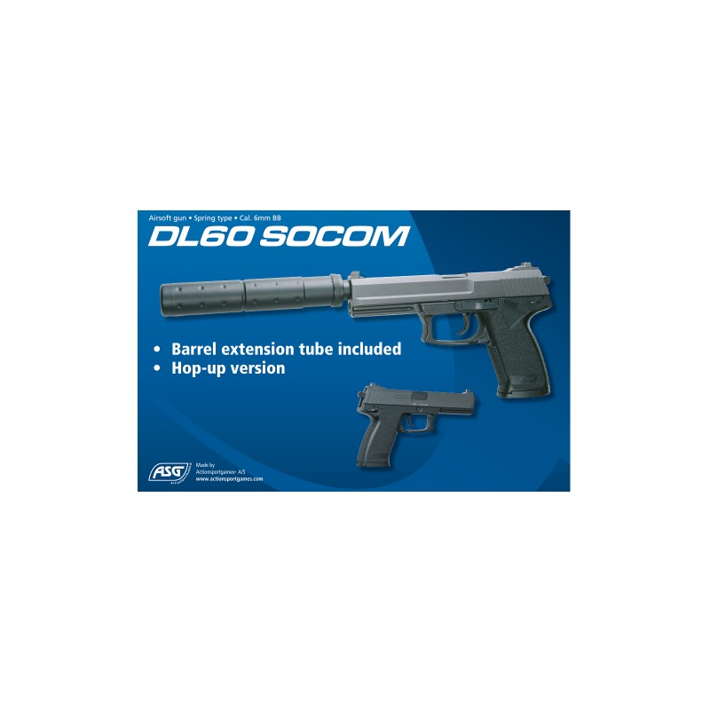 Votre magasin DR6 vous propose, dans sa gamme airsoft, cette réplique pistolet DL60 socom (ABS | 0.3 joule) ressort de la marque ASG.