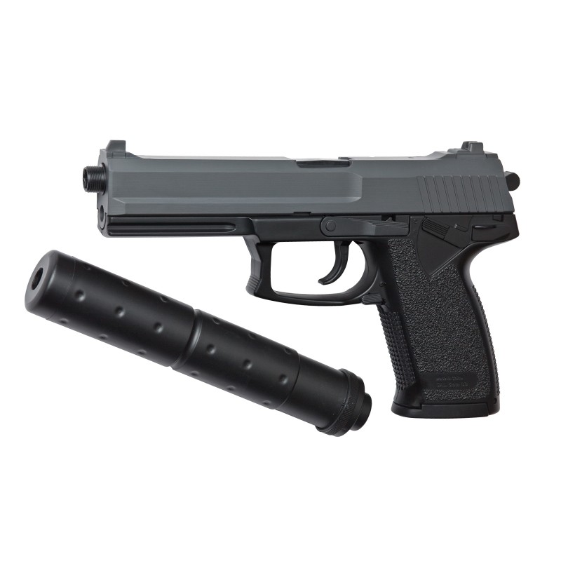 Le plus grand et le plus impressionnant des pistolets à ressort - le DL60 Socom comprend un tube d'extension du canon qui ressemble à un silencieux. Ce pistolet lourd est équipé d'un Hop-up fixe et le chargeur peut contenir jusqu'à 27 billes.